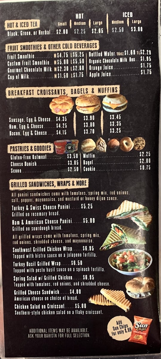 Lasaters Coffee & Tea is a hidden gem located in Clarksville, TN, that truly elevates the coffeehouse experience. Boasting a diverse menu, this establishment focuses on delivering warmth and flavor in every cup. One standout item is their Spiced Chai Latte, available in various sizes, from a small at just $5.31 to a large blended version for $6.62. Each sip is a comforting blend of spices, perfect for warming the soul.